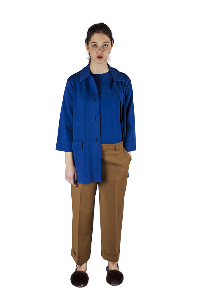 Pantaloni cropped in cotone color tabacco dalla linea morbida con chiusura con bottone e zip e passanti.