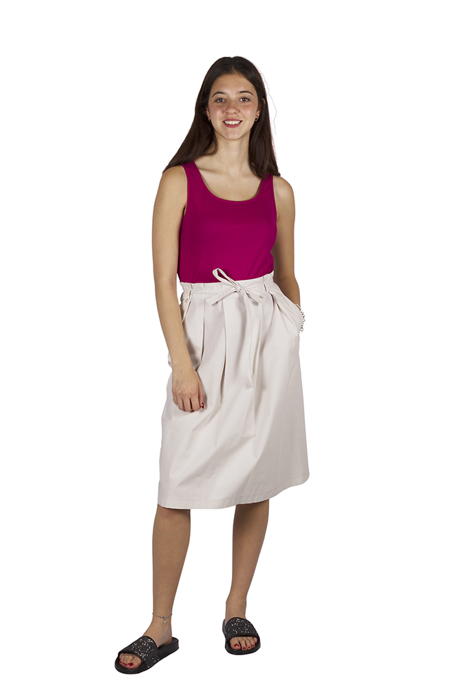 Gonna midi ampia color ghiacchio con chiusura in vita a fiocco e tasche laterali.